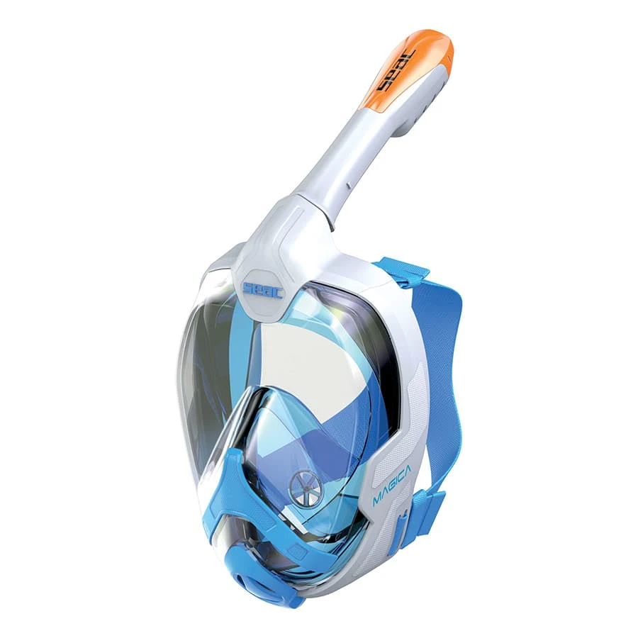 Die Seac Mágica Damen Taucherbrille ist die komplette Maske, die zum Schnorcheln entworfen und hergestellt wurde. Sie ermöglicht es Ihnen, die Welt unter Wasser zu erkunden, während Sie immer noch in der Lage sind, natürlich durch Mund und Nase zu atmen. Die ausgeatmete Luft wird durch ein patentiertes System an der Vorderseite der Maske evakuiert, um einen mühelosen Ausatemvorgang zu ermöglichen und gleichzeitig die durch das Entlüftungsventil erzeugten Geräusche zu eliminieren. Weiche und ergonomische Maske aus thermoplastischem Elastomer kombiniert mit einem thermoplastischen Rahmen und ebenfalls aus widerstandsfähigem Polycarbonat.